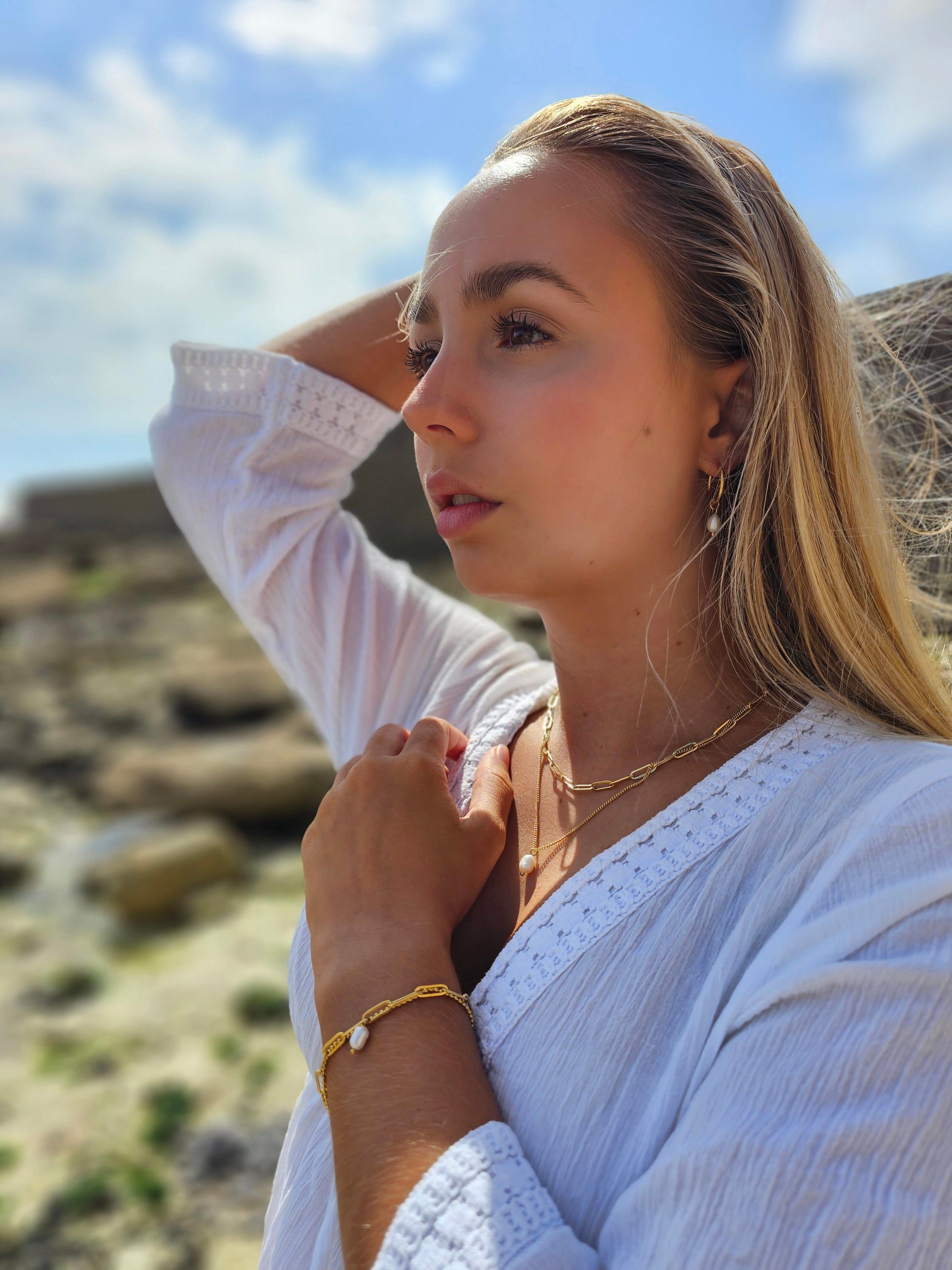 - 1x Pearl Chain Bracelet— a beautiful finishing touch that ties the whole look together